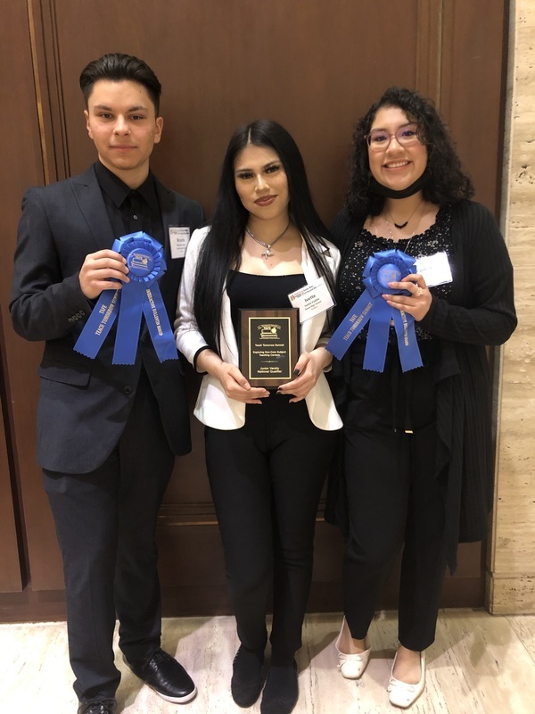 Four RHS students, Leo Robles-Lara, Ivette Padilla, Yazmin Alvarado, and Ricardo Lopez, from the Royal High School TAFE (Texas Association of Future Educators) organization competed at State on March 3-5th in Dallas. TAFE's advisor, Lynette Beyer, is excited to share that 3 students have advanced to compete at NATIONALS which will be held in Washington D.C. from June 24-27. Please congratulate Yazmin Alvarado, Ricardo Lopez, and Ivette Padilla on this great achievement!