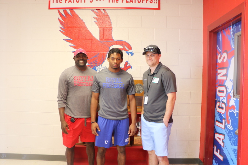 Houston Chronicle High School Sports Coordinator Jon Poorman visited Royal today to meet the team and interview four of our senior football players: Jeremiah Robinson, Justin Cryer, DaShawn Adams, and Antonio Page. The coaching staff was excited to welcome him to Royal and to show off our team. We will share the article with the Falcon community once it is published!