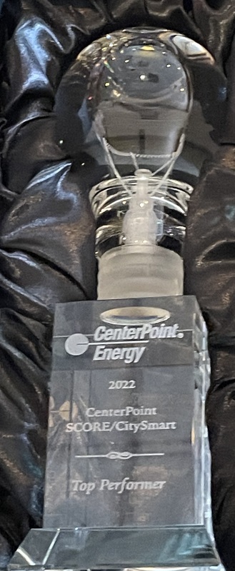 Falcon team members Christi Ginn and Derrick Dabney were invited to join Centerpoint Energy at their February 2023 SCORE/CitySmart kickoff luncheon at Maggianoβs Little Italy. Royal ISD was presented with a 2022 βTop Performerβ award and was listed in 6th place on the Top 10 for peak demand savings. Also in attendance were representatives from E3, who is partnering with Royal on the lighting and HVAC upgrades across the district.