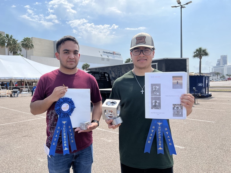 - Superior Rating, Andrew Jurado - 12th grade machined a four-inch aluminum cube with three different inside bore diameters.