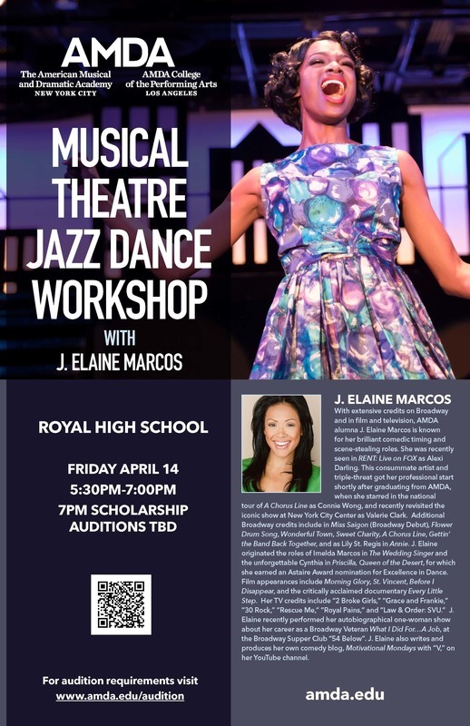 The Royal ISD Theatre Department is excited to announce that RHS will host a Musical Theatre Jazz Dance Workshop presented by the American Musical and Dramatic Academy.
