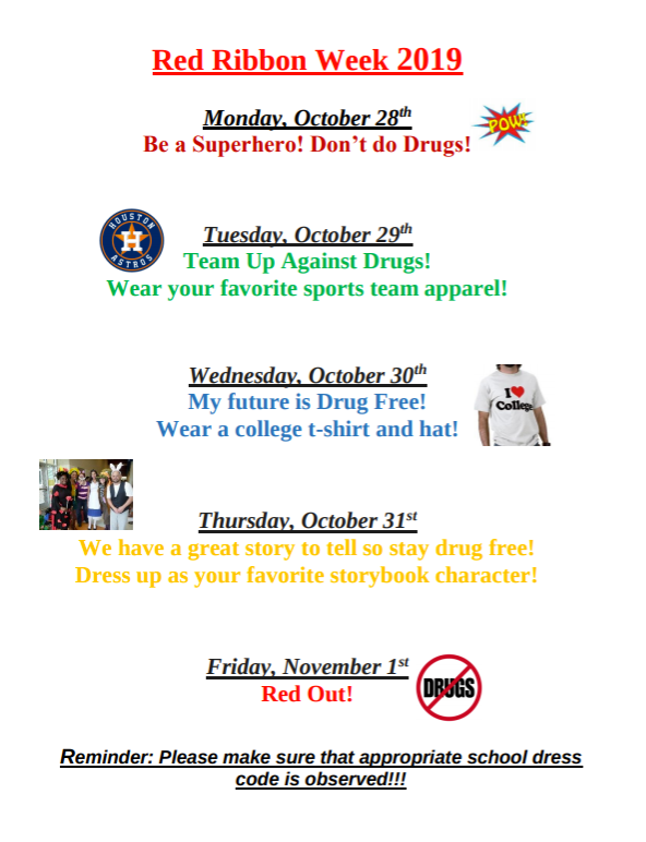 Oct, 28 - Nov. 1st "Red Ribbon Week" Activities