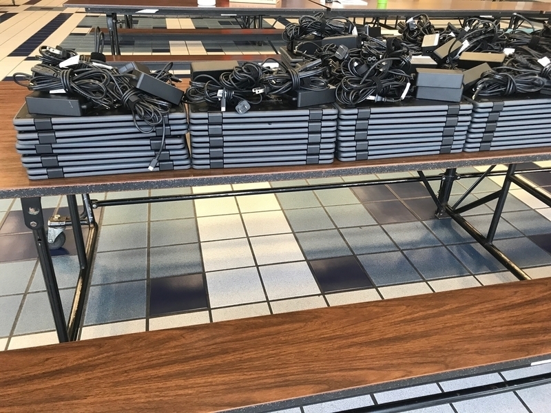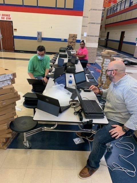 Upon their return to RISD, they unpacked the devices and worked to quickly configure them for student use. We are blessed to have Royal employees who go above and beyond to do whatever is needed to keep our students learning! When faced with this situation, they sprang into action without hesitation. It would be impossible to adequately thank the facilities and technology teams for their commitment to our students! It is now after 9 pm, and their teams are most likely still hard at work ensuring that the Chromebooks are ready for our Falcons when we reopen tomorrow morning. Campus teams are busy each day this week distributing Chromebooks.