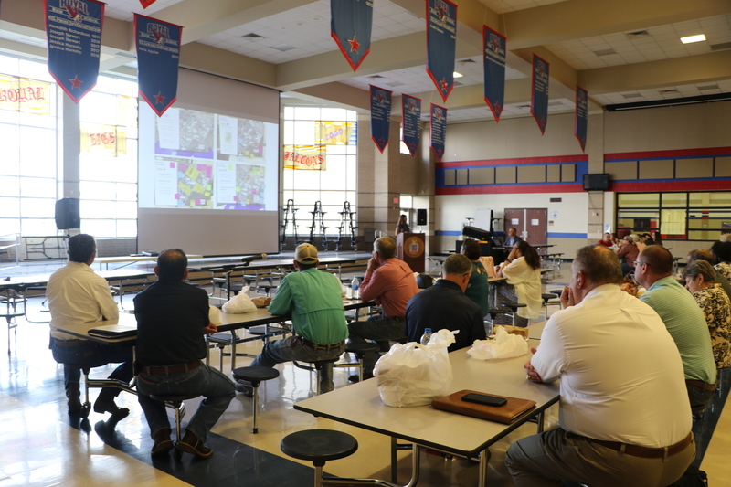 The Royal Community Advisory Committee met on June 22 to continue discussing facility needs and expected district growth. The group heard from Royal ISD Financial Advisor Lucas Janda, Kimberly Bow and Michael Lovaglio from Stantec, and Steve Risser from Gallagher Construction Services, who led the group of 33 attendees in a discussion about how to best meet the needs of current and future students. The group discussion resulted in a recommendation that will be presented to the RISD School Board at their July 19 meeting.