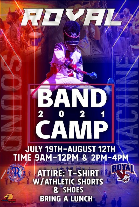 Band camp will take place July 19 - August 12, Monday - Thursday, 9AM - 12PM and 2PM - 4PM. #soundmachinenation