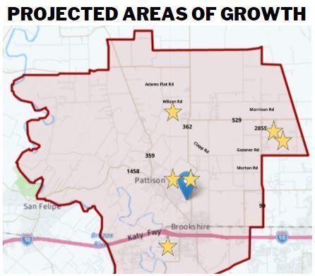 Mike Barnes shared that the main focus in location scouting for businesses used to be βlocation, location, locationβ. The focus has shifted in recent years to βeducation, education, educationβ, meaning that Royal ISD is a critical piece of what attracts new industry and businesses to the Brookshire/Pattison area. Stream Realty constructed 1,036,057 square feet four months ago in Empire West. This facility is fully occupied and/or leased. Another 2,131,305 square feet is planned for construction on the 300-acre park. Brookshire is also home to the North American headquarters of Grundfos. Brookshire was selected during a nationwide site search. Duro Hilx, Brookshire Hyundai, Brookshire Holiday Inn Express, and Brookshire Drying Company are just a few of the rapidly growing area businesses adding employment opportunities and revenue to the area.