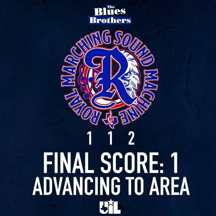 Here's some great news to start your day! Congratulations to the SUPERIOR RATED Royal Marching Sound Machine!!! This yearβs UIL Marching Competition was a success!!! The band received scores of 1, 1, and 2, and a final score of 1.