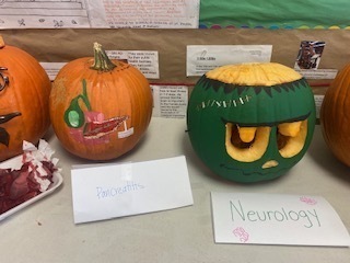Teacher Jillian Pike making learning fun for our RHS Health Science students! Have a happy and safe Halloween, Falcons!
