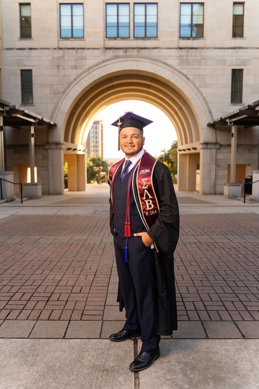 Juan Perez is graduating with his Baccalaureate of Science degree in Criminal Justice and Mercedes Saldana is graduating with her Baccalaureate of Science degree in Human Development and Family Sciences.