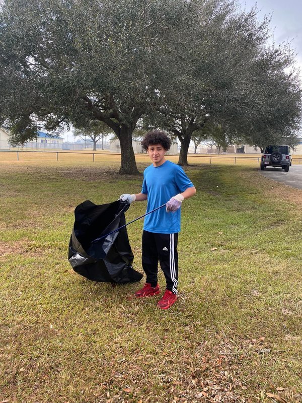 RHS teachers Jillian Pike, Frank Cobio, and Cesar Gonzalez spent a cold and drizzly Saturday morning with some of our Falcon students picking up trash in the area. One student in attendance (pictured individually below) played soccer Friday night and was tired, but still showed up to help his community. The student went above and beyond by offering to also pick up trash he saw on the Junior High campus. Teacher Jillian Pike stated, βThere are really good kids at Royal. I am proud to be a part of this team. I hope when you see these kids out in the community you can say thank you to them.β
