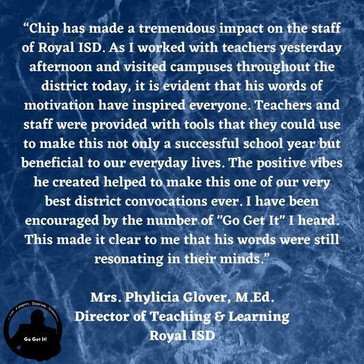The eventβs keynote speaker was inspirational speaker and author Chip Baker, who charged the Falcon team to βgo get itβ this year as they live, learn, serve, and inspire their students.