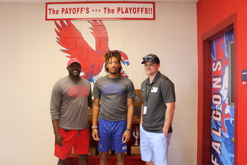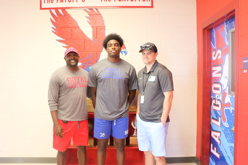 Houston Chronicle High School Sports Coordinator Jon Poorman visited Royal today to meet the team and interview four of our senior football players: Jeremiah Robinson, Justin Cryer, DaShawn Adams, and Antonio Page. The coaching staff was excited to welcome him to Royal and to show off our team. We will share the article with the Falcon community once it is published!