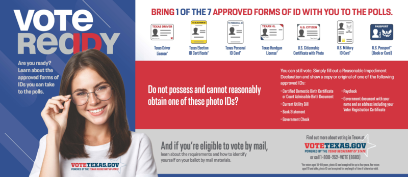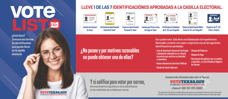 Are you registered to vote? Visit www.votetexas.gov (en EspaΓ±ol) to check your registration status, register, see the ballot for your area, and more! OCTOBER 11 is the deadline to register. Early voting runs from October 24 to November 4 and Election Day is November 8.