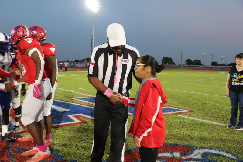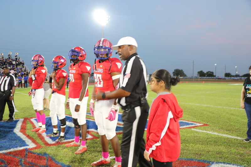 Royal High School student Jewel Whitaker had the unique opportunity to perform the coin toss at the Royal vs. Wharton varsity football game. Thank you to Jewel for joining us at the game and for tossing the coin in Royal's favor. Check out the "All About Me" interview with Jewel as well as more pictures of this spirited Falcon!