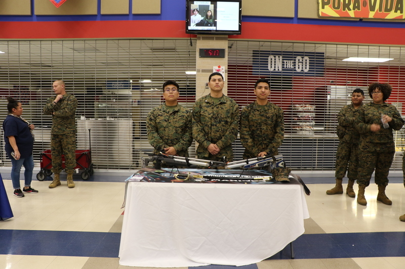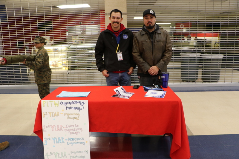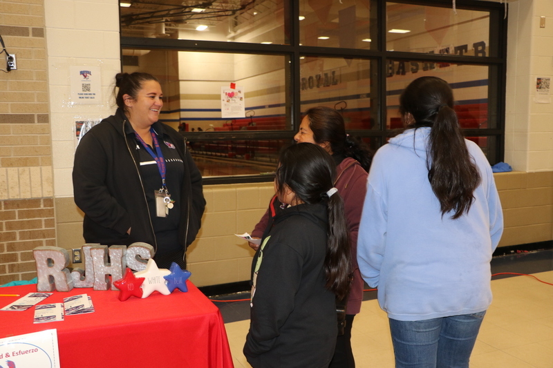 Royal Junior High, Royal STEM Academy, and Royal High School hosted an Emerging Bilingual Resource Fair and Community Engagement event on Wednesday, February 1, 2023. The event included information booths for Royal ISD, Royal High School, Royal STEM Academy, Royal Junior High, the Royal CTE program, The Hangar Unity Center, Royal MJROTC, Royal PLTW Engineering Pathways, and the Royal Boys & Girls Club. The event also featured a presentation of colors by the Royal MJROTC cadets, a presentation about district offerings and parent resources, and food from Chepes for the approximately 75 guests.