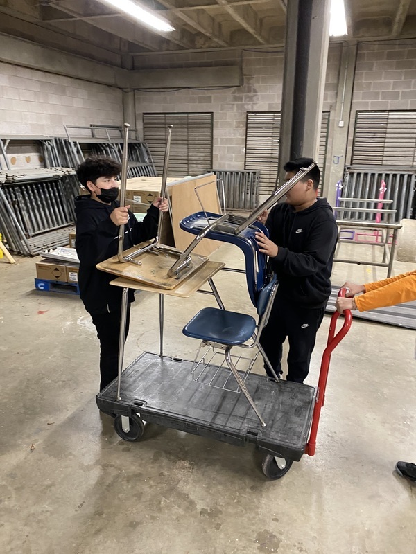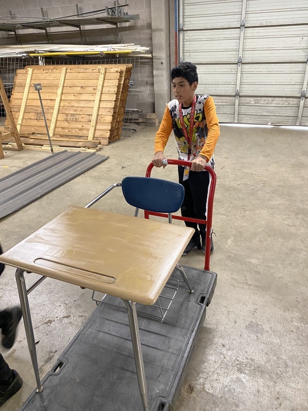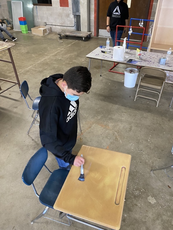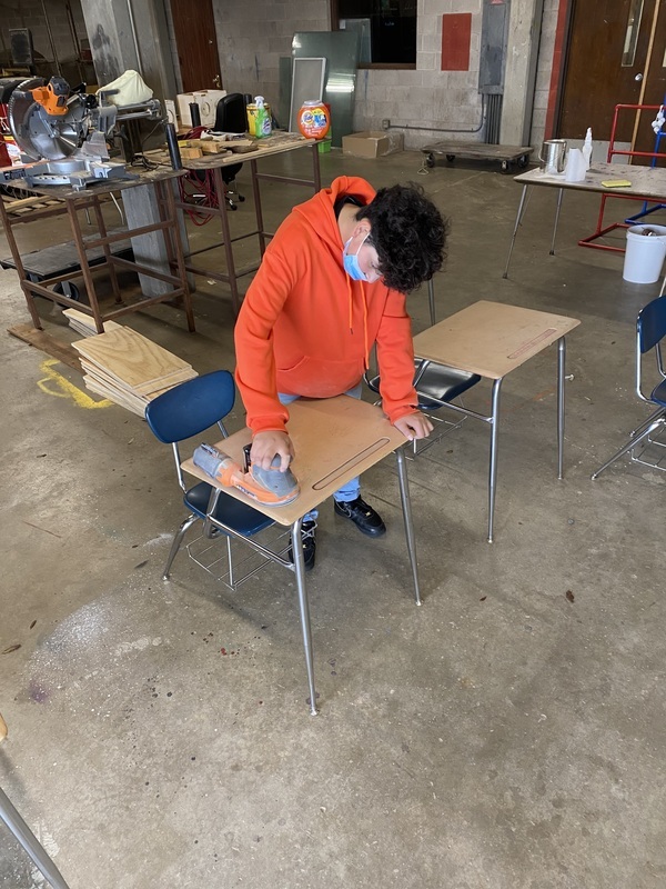RJH Principal Mr. McLemore asked the General Trades class to repair the desks that had graffiti. The students rose to the challenge and refurbished 40 desks in 3 days.