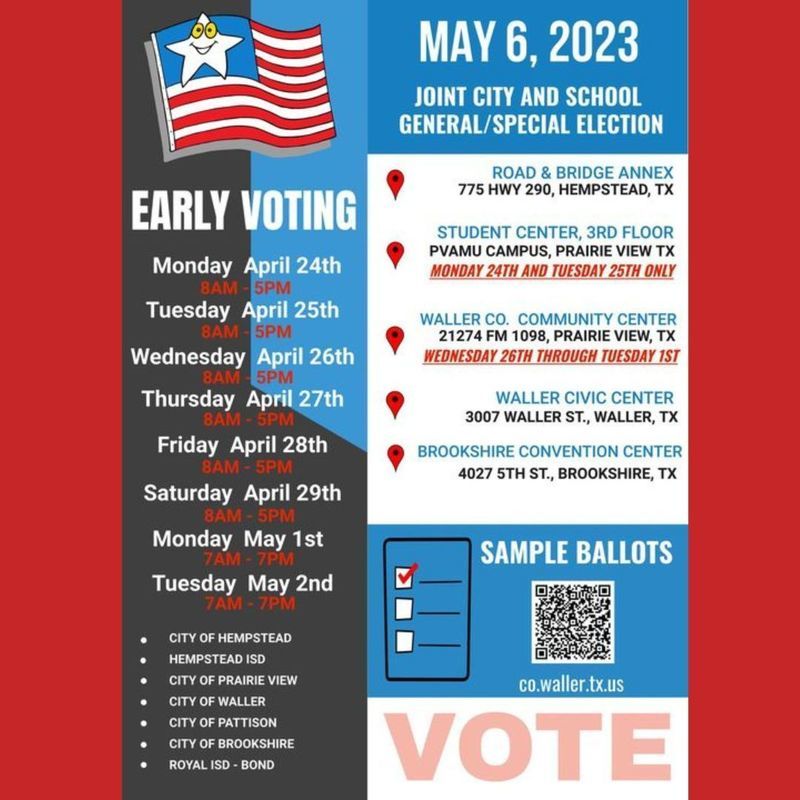 Early Voting Flyer! Get the facts: Read about whatβs included in Royal Bond 2023. Still have questions? Contact us at royalbond2023@royal-isd.net or 281-934-6940.