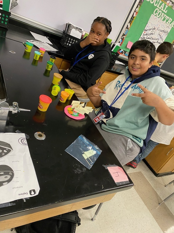 Royal Junior High science students put learning into action in Ms. Ebanks' class. They were instructed to build a model of either a plant or animal cell and label all of the organelles using PlayDoh. Students were tasked with explaining what the organelles did and what they resembled. For example, some students felt that the cell membrane reminded them of a door because like a door lets people in and out, the cell membrane lets molecules in and out of the cell. #WeAreRoyal #AttitudeAndEffort