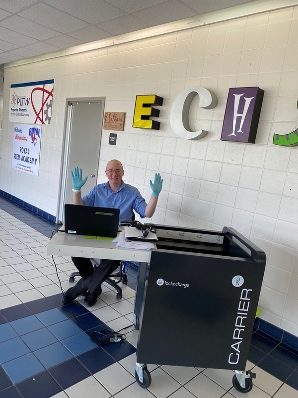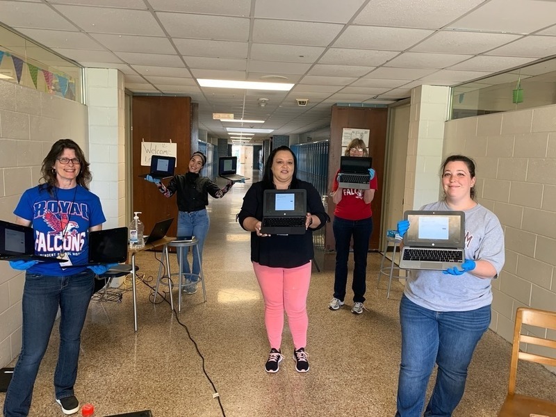 Upon their return to RISD, they unpacked the devices and worked to quickly configure them for student use. We are blessed to have Royal employees who go above and beyond to do whatever is needed to keep our students learning! When faced with this situation, they sprang into action without hesitation. It would be impossible to adequately thank the facilities and technology teams for their commitment to our students! It is now after 9 pm, and their teams are most likely still hard at work ensuring that the Chromebooks are ready for our Falcons when we reopen tomorrow morning. Campus teams are busy each day this week distributing Chromebooks.