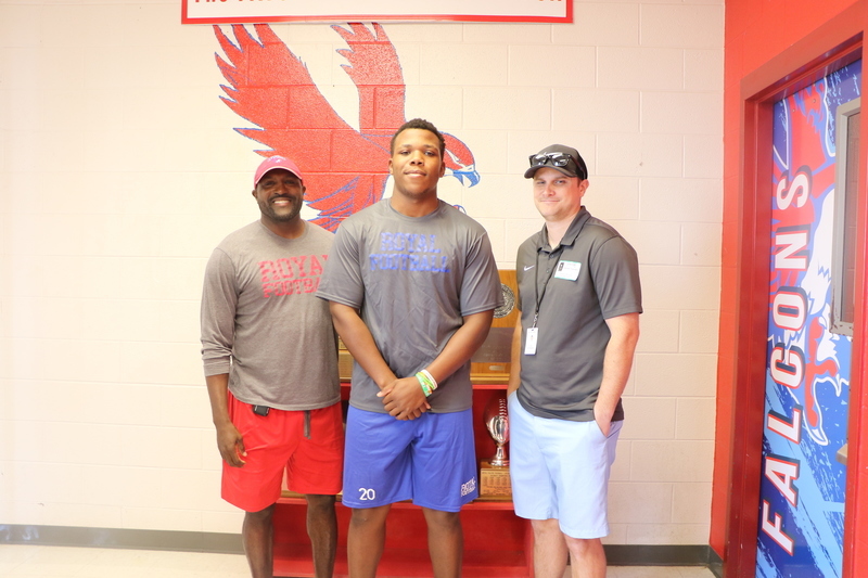 Houston Chronicle High School Sports Coordinator Jon Poorman visited Royal today to meet the team and interview four of our senior football players: Jeremiah Robinson, Justin Cryer, DaShawn Adams, and Antonio Page. The coaching staff was excited to welcome him to Royal and to show off our team. We will share the article with the Falcon community once it is published!
