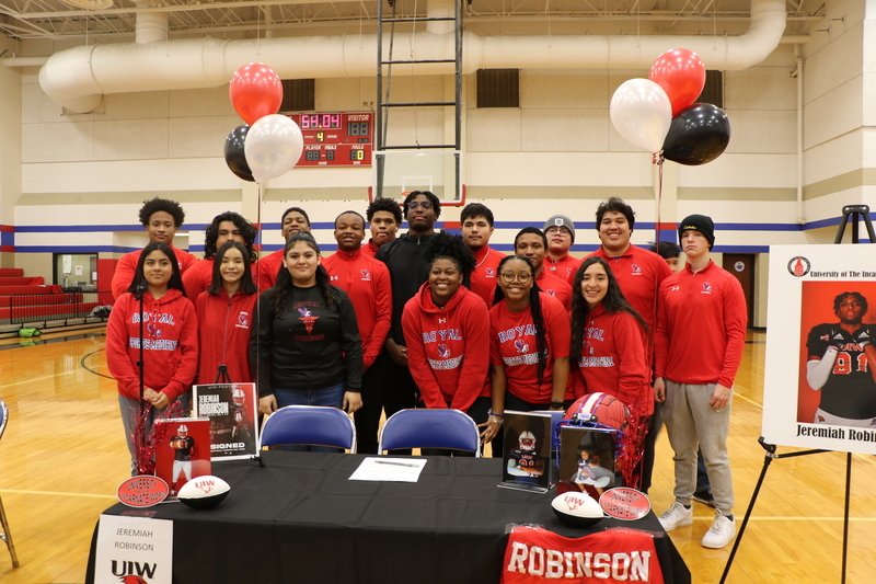 Congratulations to Jeremiah Robinson and DaβShawn Adams for their commitments to full college scholarships. Both Falcons signed their commitments today during a ceremony at Royal High School. Click here to view a video of the event.