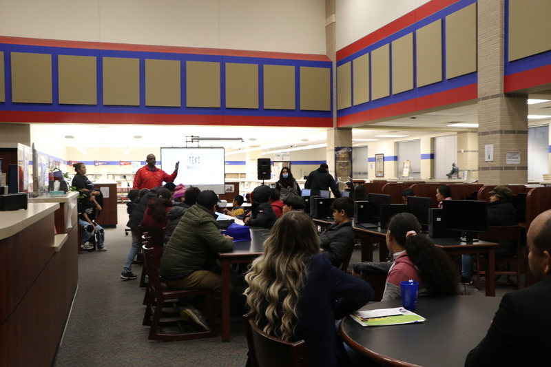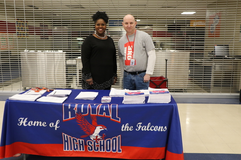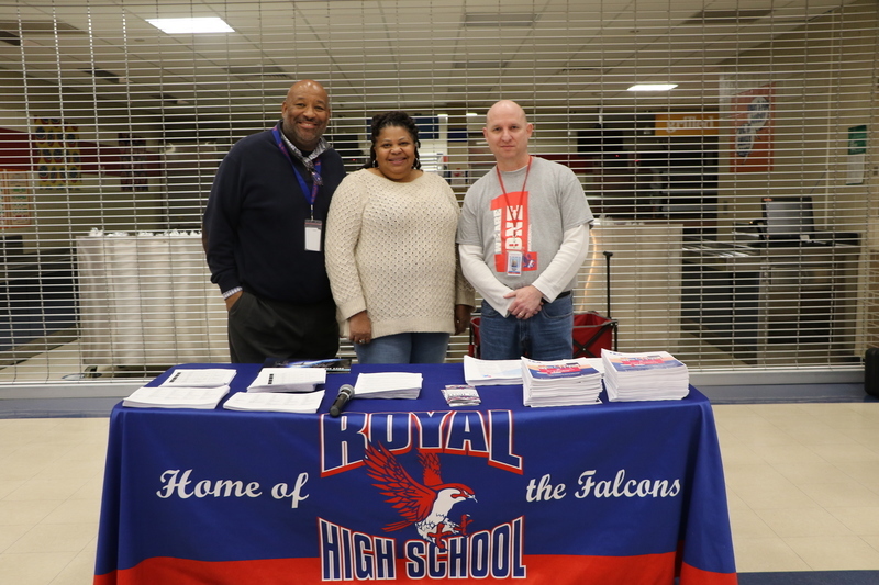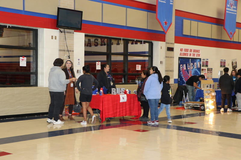 Royal Junior High, Royal STEM Academy, and Royal High School hosted an Emerging Bilingual Resource Fair and Community Engagement event on Wednesday, February 1, 2023. The event included information booths for Royal ISD, Royal High School, Royal STEM Academy, Royal Junior High, the Royal CTE program, The Hangar Unity Center, Royal MJROTC, Royal PLTW Engineering Pathways, and the Royal Boys & Girls Club. The event also featured a presentation of colors by the Royal MJROTC cadets, a presentation about district offerings and parent resources, and food from Chepes for the approximately 75 guests.