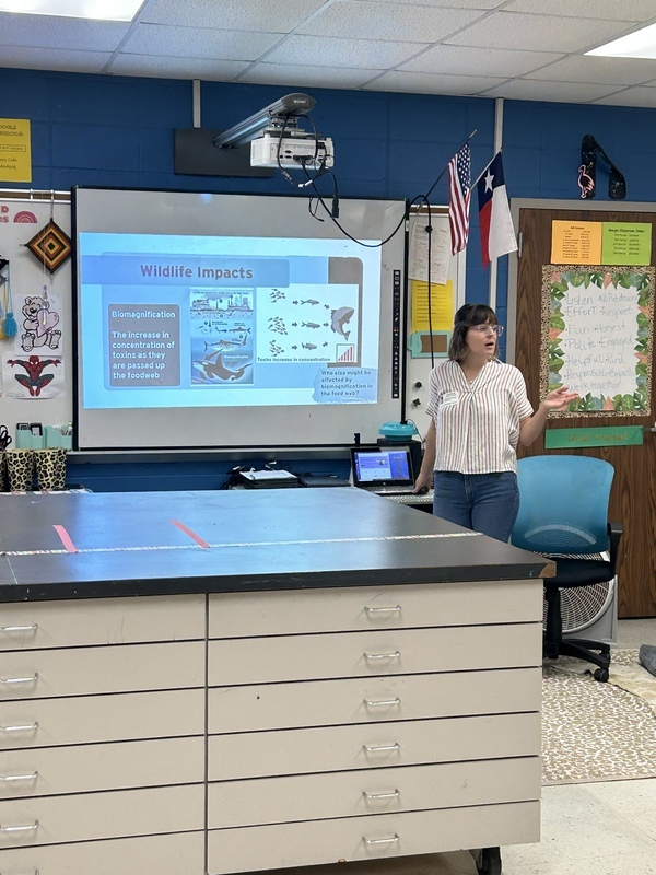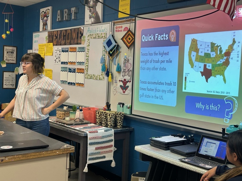 Representative, Ms. Elizabeth Virgil from Stopping Plastics and Litter Along Shorelines (SPLASH) spoke to five Falcon art classes.