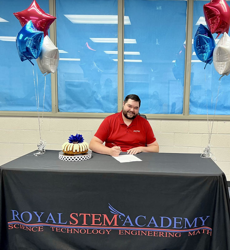 He was joined on signing day by his wife, Falcon Veronica Webb, their children, STEM Principal Katelyn Miksch, Royal Director of Teaching and Learning Phylicia Glover, STEM PLTW teacher Ana Lopez, and Dr. Hill Jackson from Prairie View A&M for the signing of his teacher contact. Congratulations, Mr. Webb! We look forward to great things from you as you lead our students and invest in our tomorrow! #WeAreRoyal