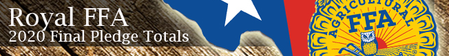 Thanks again to all who participated to make our Pledge Drive a success during this historic time of uncertainty in our community and great nation! Your willingness to contribute will always have a special place in the legacy & lore of the Royal FFA Chapter.