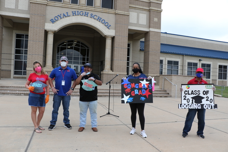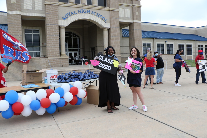 The team at Royal ISD celebrated the Class of 2020 on May 7, 2020 with a Celebration Drive-Thru Parade. Seniors traveled through the Royal High school drive while RISD staff and the Royal community cheered for them. A DJ was on hand to provide music for the event. Each senior was surprised with a personalized yard sign commemorating their class, and received their caps and gowns, senior t-shirts, and more. We want to extend a huge thank you to Seth Stokes of Launch Graphics for designing and producing the senior signs.