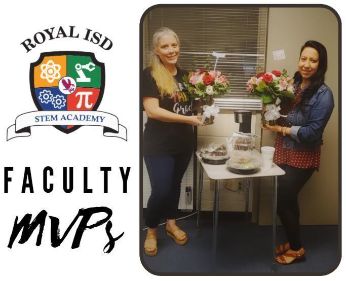 Mrs. Ana Lopez, on the right, is our Project Lead the Way (PLTW) lead teacher. Mrs. Lopez exhibits the Falcon Values of being committed to the STEM campus and caring so much for everyone around her. Her dedication to this campus does not go unnoticed. We appreciate her positive attitude and willingness to do whatever it takes to get the job done. Her love for the PLTW program is felt not only at the JH level but all levels throughout the building.