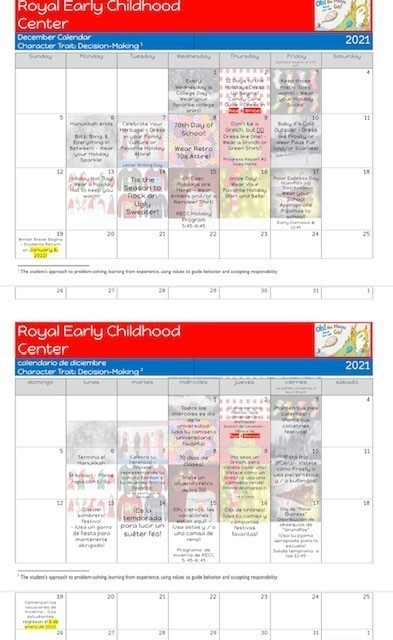 Welcome back! We hope you had a safe and happy Thanksgiving, and that you are ready for a busy week! CLICK HERE to check out the district calendar of events. Here is a quick overview of the week, the December calendar for Royal ECC, and the athletics week at a glance for 11/29.