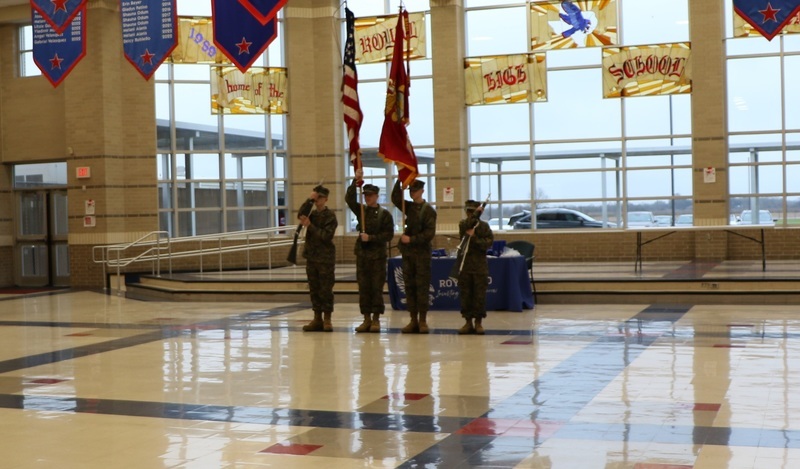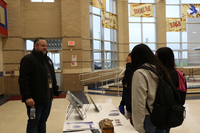 Royal Junior High, Royal STEM Academy, and Royal High School hosted an Emerging Bilingual Resource Fair and Community Engagement event on Wednesday, February 1, 2023. The event included information booths for Royal ISD, Royal High School, Royal STEM Academy, Royal Junior High, the Royal CTE program, The Hangar Unity Center, Royal MJROTC, Royal PLTW Engineering Pathways, and the Royal Boys & Girls Club. The event also featured a presentation of colors by the Royal MJROTC cadets, a presentation about district offerings and parent resources, and food from Chepes for the approximately 75 guests.